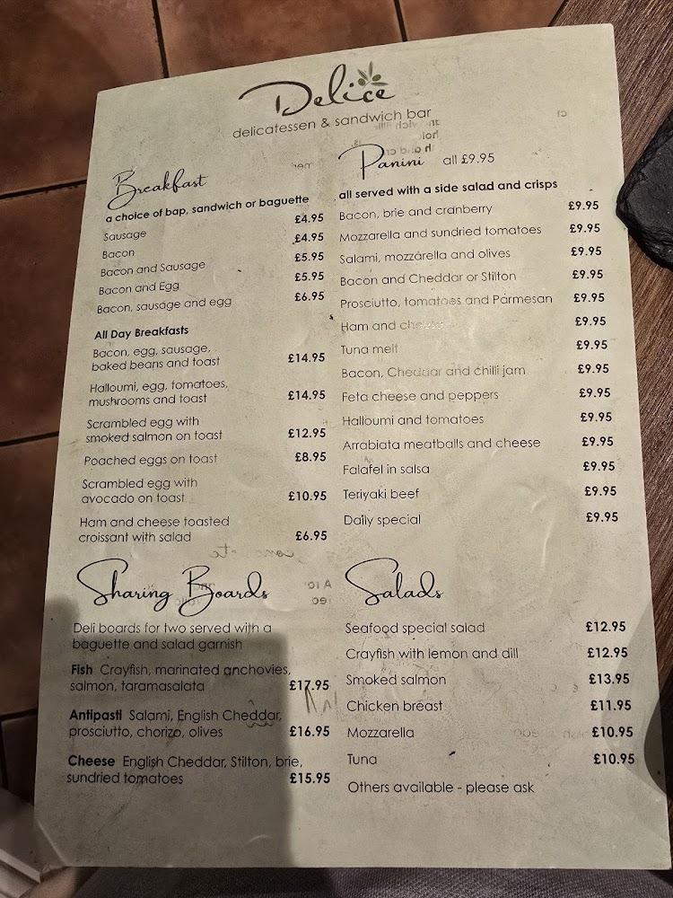 Located at 37a High St, Witney OX28 6HP, Delice embodies a welcoming vibe that draws both locals and tourists. Witney itself is a picturesque market town with a rich history, and Delice fits seamlessly into this charming tapestry. The café's strategic location allows for a pleasant stroll around the area after a satisfying meal. Known for its inviting atmosphere, Delice enjoys a steady stream of customers, especially during peak lunchtime hours. With a busy Saturday lunch crowd often reaching full capacity, it's advisable to arrive early or consider booking a table in advance. The nearby streets feature free parking options, which makes it convenient for visitors with cars. Expect a mix of families, groups, and individuals working on their laptops, all enjoying the café's warm, community-oriented ambiance. Accessibility is a key feature, with wheelchair-accessible seating and entrances ensuring that everyone feels welcome.